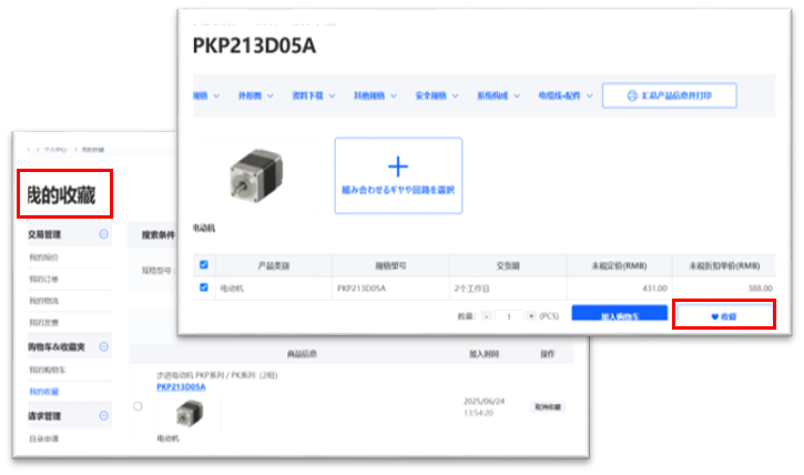 您可以利用一鍵“收藏”、一鍵“再次報價”等便利的功能快速加購商品。