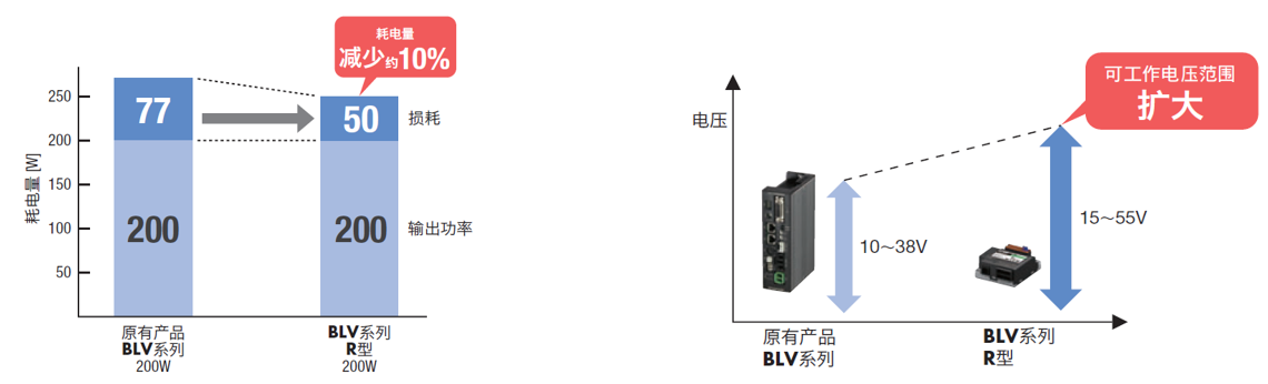 由于需要配合傳送帶尺寸且受到裝置設(shè)置空間限制,AGV本身體積不能太大。 而BLV系列R型的電動(dòng)機(jī)、驅(qū)動(dòng)器均實(shí)現(xiàn)了大幅度的小型、輕量化,實(shí)現(xiàn)了裝置的小型化·省空間化。 此外,驅(qū)動(dòng)器與原有產(chǎn)品相比,體積·質(zhì)量約縮小了80%,提高了設(shè)置場(chǎng)所的自由度。