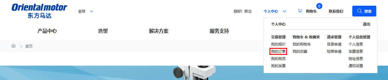 ① 登錄賬戶,進(jìn)入 個(gè)人中心-我的訂單 頁面。