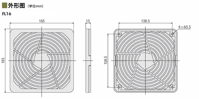 | 說(shuō)明 | 防護(hù)網(wǎng)(1片)、濾網(wǎng)(1片)及安裝螺絲的套件品。 (適用軸流風(fēng)扇的尺寸: □160 mm) |