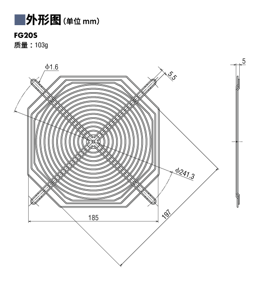 | 說明 | 不銹鋼制防護(hù)網(wǎng)(2片)和安裝用螺絲的套件品。 (適用軸流風(fēng)扇的尺寸: □200 mm) |