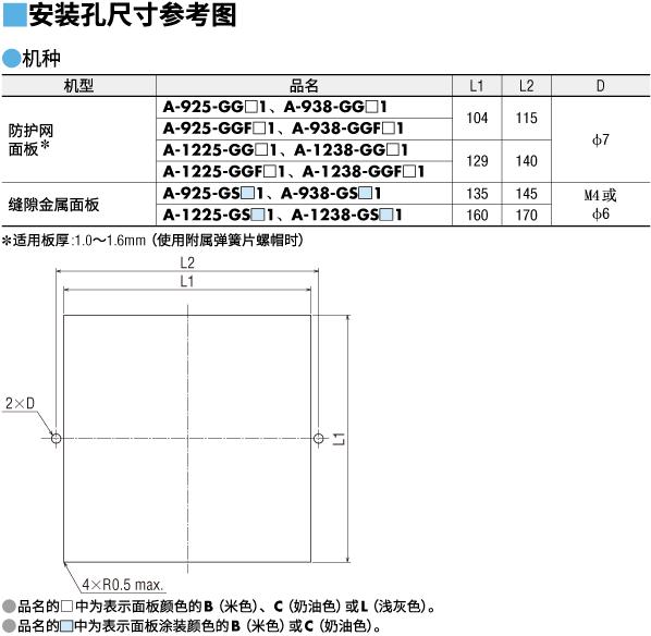 | 防護(hù)網(wǎng)面板套件 | A-925-GGC1 | 銷售停止品 | - | - | |