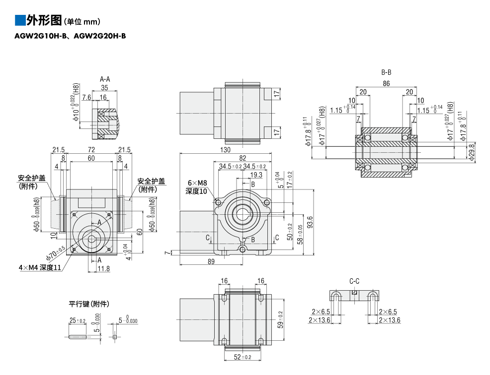 說明 可與配備平行軸減速機、安裝尺寸為60mm的30W無刷電動機組合使用。