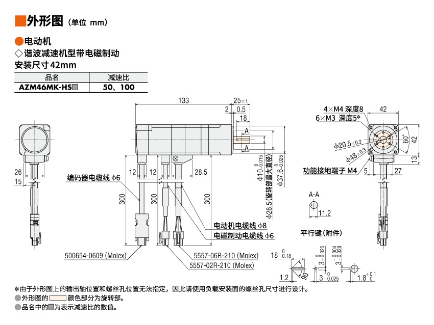 • ※ 電纜線型帶電磁制動的,當使用電纜線延長20m,需符合DC24V±4%的規(guī)格。