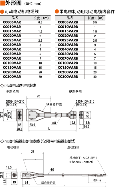 | 說明 | 電動機(jī)與驅(qū)動器間的可動電動機(jī)用電纜線、可動電磁制動用電纜線套件。請于電動機(jī)安裝在可動部,電纜線需彎曲時使用。長度0.5 m |
