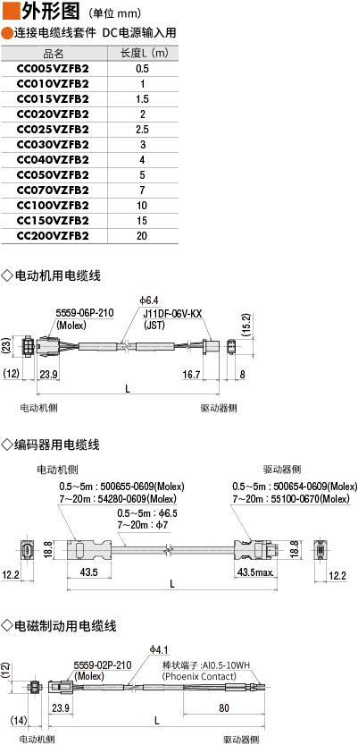 | 說明 | 電動機(jī)與驅(qū)動器間連接時必需的電動機(jī)用電纜線、電磁制動用電纜線套件。長度0.5 m |
