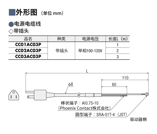 電源電纜線 CC01AC03P 14個(gè)工作日 118.00 106.00