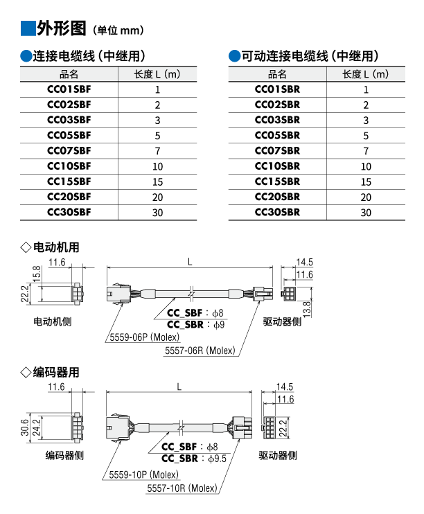 | 說明 | 電動(dòng)機(jī)與驅(qū)動(dòng)器間的連接電纜線。套件包括電動(dòng)機(jī)用電纜線和編碼器用電纜線。 1 m |