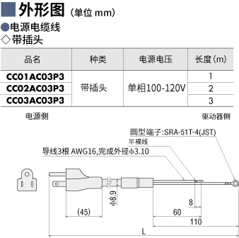 | 說明 | 用于連接AR系列AC電源輸入型用驅(qū)動(dòng)器(單相)與電源的附插頭電纜線。 長度2 m |