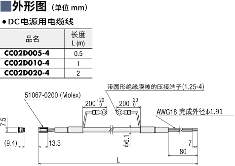 | 說明 | 連接驅(qū)動器與電源的帶連接器電纜線。 長度0.5 m |
