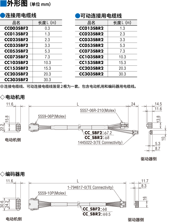 | 說明 | 電動機與驅(qū)動器間的連接電纜線。套件包括電動機用電纜線和編碼器用電纜線。 3.3 m |