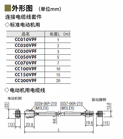 | 說明 | 電動(dòng)機(jī)與驅(qū)動(dòng)器間連接,或電動(dòng)機(jī)與電纜線間中繼時(shí)必需的電動(dòng)機(jī)用電纜線。長(zhǎng)度5 m |