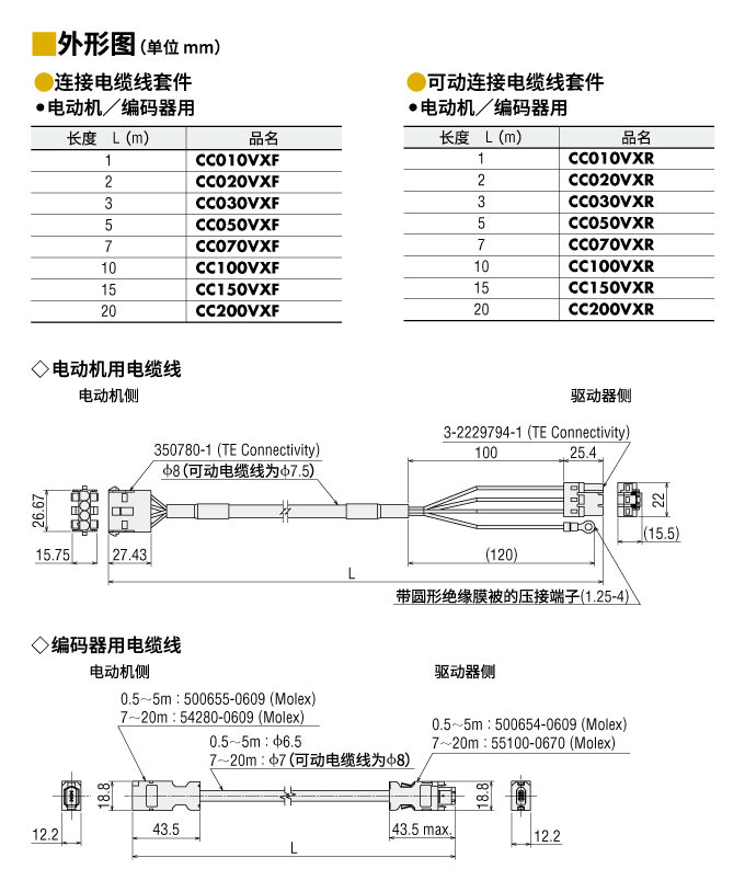 說(shuō)明 可動(dòng)連接電纜線套件 長(zhǎng)度5m