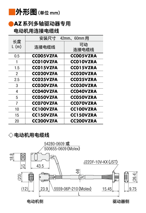 | 說明 | 請(qǐng)于安裝尺寸42 mm、60 mm的電動(dòng)機(jī)(帶電磁制動(dòng)除外)與驅(qū)動(dòng)器間連接時(shí)使用。長度5 m |