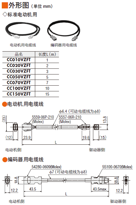說明 電動機(jī)與電纜線間中繼時必需的電纜線。長度5 m