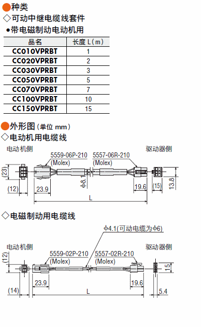 電纜線 帶電磁制動(dòng)用可動(dòng)中繼電纜線套件