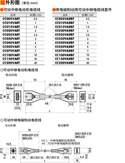 說明 電動機(jī)與電纜線間的中繼用可動電動機(jī)用電纜線。請于電動機(jī)安裝在可動部,電纜線需彎曲時使用。長度15 m