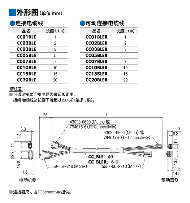 | 說明 | 可動連接電纜線 長度20 m 請于電纜線需反復彎曲時使用。 |