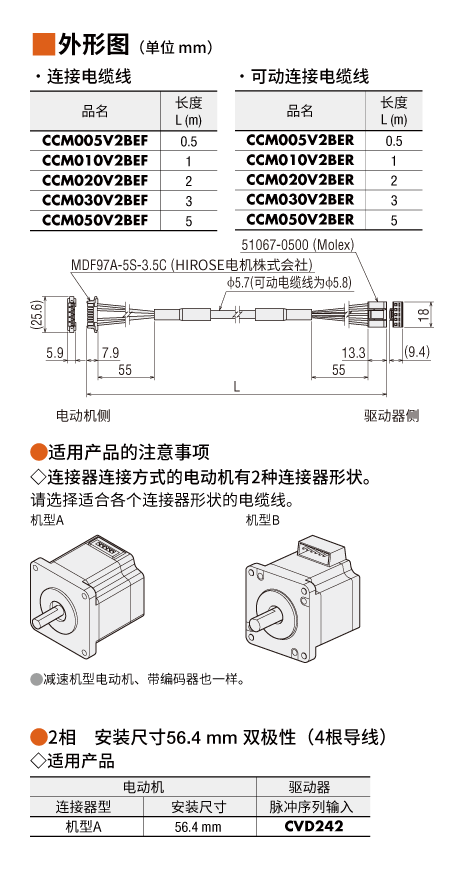 說明 連接器連接方式電動機與驅(qū)動器直接連接用的可動電纜線。請于電動機安裝在可動部,電纜線需彎曲時使用。兩端帶連接器,長0.5 m