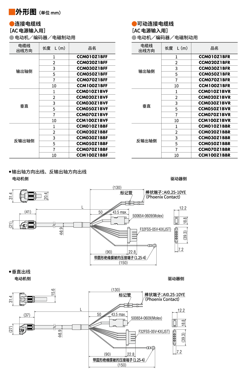 | 說明 | 連接電纜線 輸出軸方向出線 長度1 m |