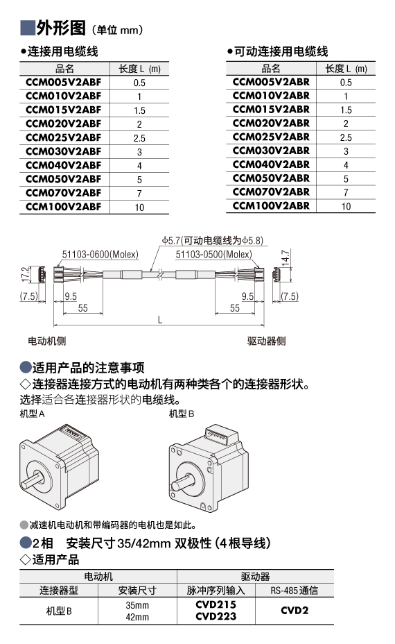 | 說明 | 連接器連接方式電動(dòng)機(jī)與驅(qū)動(dòng)器直接連接用的電纜線。兩端帶連接器,長(zhǎng)2 m |