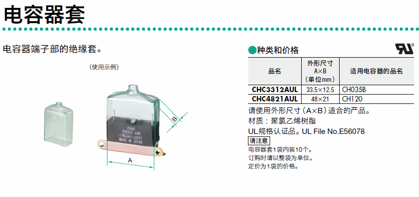 | 電容器套(方形)10個裝 | CHC4821AUL | 14個工作日 | 41.00 | 37.00 | |