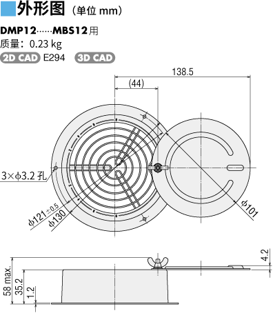 | 說(shuō)明 | 安裝在離心式風(fēng)扇吸風(fēng)口,安裝后可以很容易在手邊調(diào)節(jié)風(fēng)量的周邊機(jī)器。 阻尼器上刻有刻度數(shù)字。( MBS12用) |