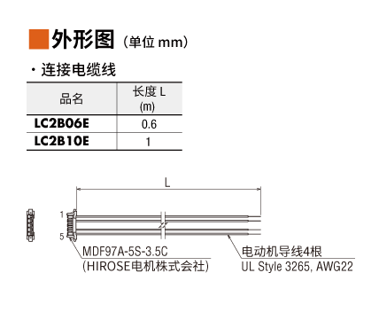 說明 請(qǐng)用于電動(dòng)機(jī)與驅(qū)動(dòng)器間的連接。已壓接連接器導(dǎo)線型,長(zhǎng)1 m
